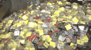 (进入回收机后被压瘪的瓶子。动图来源:youtube)