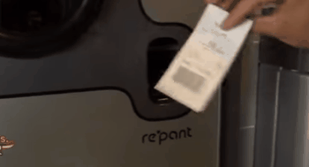 (图片说明:瓶身上有识别码,机器读码后,便会显示相应的金额,打印出来的收据,可以直接拿到超市买东西。动图来源:youtube)