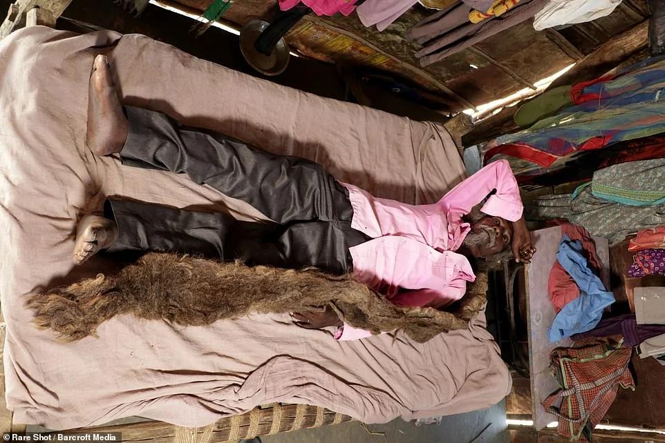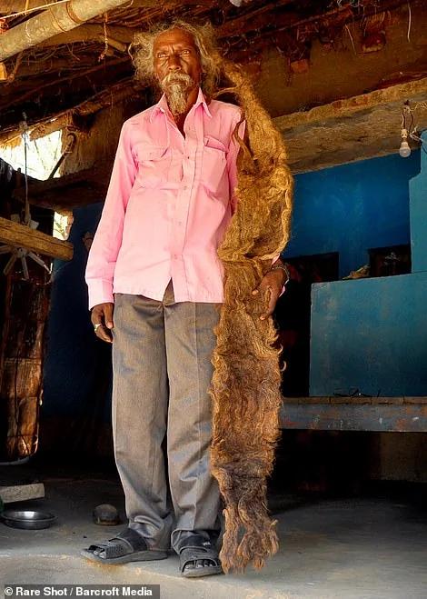 ▼在森林部门工作了31年的Sakal Dev Tuddu,与妻子 Rupiya育有3子3女和7个孙子,他的家人对于他的一头“秀发”也没有任何异议。