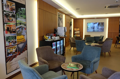 司机在早上把我送到了这间度假村在市内的接待处。这里是一间距离机场不远的接待处。绝大部份的游客都是乘坐飞机到达,这里是一个很好的休息站。有一间普通的店铺改造而成。里面确实舒服有冷气、沙发和免费饮料的休息站。前台得服务员非常细心地迎接我们还附上一个装了一些小礼物譬如环保铝制水瓶和一本关于我们即将要去的森林介绍书。
