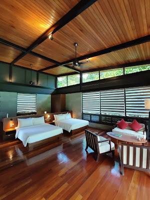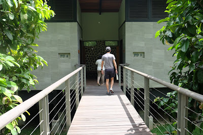 在骗吃骗喝的情况下,我入住了这里的单层别墅。我心里开心得不得了。非常期待这一次的住宿。为了确保干净,这里房间都是类似高脚屋的设计,避免跟烂泥接触。每一间房间都由天桥连接起来。另外告诉大家的是,这里不能乱走!不能擅自闯入森林保护区。迷路了,就bye bye咯。