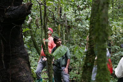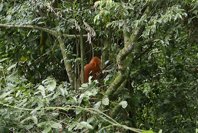 忽然间,导游受到消息说发现了红毛猩猩的踪迹。红毛猩猩是这里的居民,由于长期活在高高的树上,我们很难发现他们。这时候导游临时改变了计划,决定来了一个追寻红毛猩猩的计划。偏离了我们原本的路线,我们在不知名的小径上快步走。在红毛猩猩还没有离开前,看到它们。