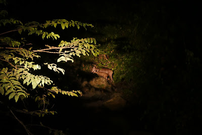我们沿着大路满满地驾驶很快就补抓到了水鹿的踪迹。一大一小在过马路。然后跑进了附近的小溪里。在这里跟大家说,拍照是很难的。除了你要带大炮相机才能拍远距离的动物以外,夜间的灯光非常暗。都只能拍到模糊的照片。或许最美的回忆,就只能放在心里。过后我们看见一些在睡觉的鸟类和飞鼠。很快就结束了今天的行程。