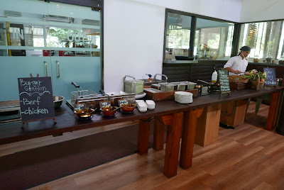 休息片刻后,我们到了度假村唯一的餐厅用餐。这里采用的是buffet试的服务。这里没有一般的快餐,反而是融合了本地和西方的一些家常便饭。由于这里是全包的,一天3餐都会在度假村里使用。这里的菜肴不算特别多。有一般酒店的egg station还有厨师会帮你炒一些自己选的蔬菜。