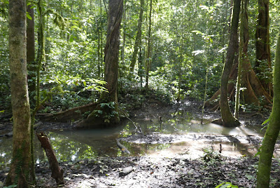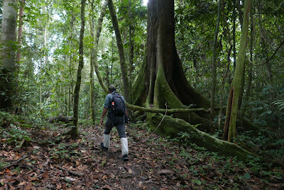 今天早上会参加最后一轮的森林徒步了。跟第一天差不多,唯有路线有少许不一样。在进去森林的路上看到了很多绿色的小蜥蜴。还有让人不安的羽毛。片地的羽毛应该是类似山鸡留下来的。恐怕昨晚有一些肉食动物譬如山猫或者云豹?捕猎了这只连骨头都看不见的山鸡。一路上还看见了奔跑的山猪和一些非常巨大不知名的树。