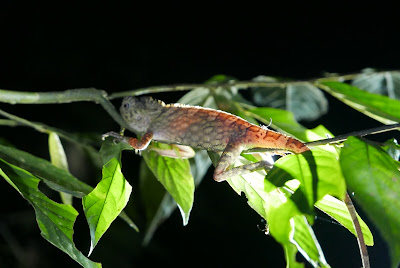 晚上又是另外一个活动了。今早我们坐上一辆开放试的大车到大路那边进行夜间巡游。有趣的是导游会站在车前方用巨大的电筒照耀周围的树林。夜里的树林非常黑暗,如果没有这盏大灯,绝对看不见四周围。其他人就坐在车后面帮忙寻找夜间出没的动物。