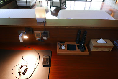 门一开,我只能用爽来形容。这里不单有一般的超大king size床,还有很多意想不到的设备。譬如超级大的浴室,分为室内和室外的沐浴空间。让你感受回归大自然的感觉。浴室的尽头就是面对小溪的一间小泳池。可以直接从浴室到达泳池。房间里头还有一些原住民的小吃、自制饼干(可以refill的)、咖啡机和一些已经放好在冰箱的汽水。整10尺长的书桌还为客人准备了手电筒、望远镜、电压转换器和度假村保持联络的手机。当然最后的重头戏就是巨大的玻璃们和可以欣赏外面美景的大阳台。最重要是冷气够冷,因为窗开了就有数不清的虫子飞进来。