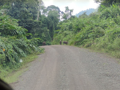 从二级森林慢慢进入到了原始森林。司机开始指点一些出现的动物。我们一路上分别看到了老鹰和几只山猪。山猪真的可爱到不行。经过了保安站、开了锁、我们正式进入度假村的范围。保安恨重要,这里毕竟是无人区,里面不可以有闲人闯入。里面是没有警局的了。