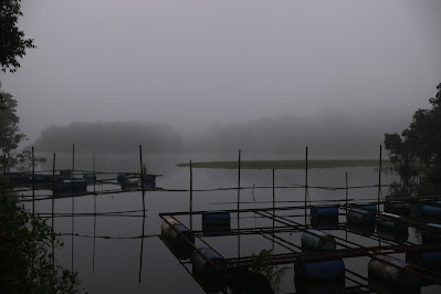 清晨我自动醒来后,独自一人到处闲逛。想不到早晨的雾水可以那么浓。走到了湖边却看不到远处的风景。走到了进入度假村的铁桥同样也是被迷雾包围。
