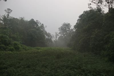 在江沙被雨水洗刷过后,整片天空还是灰蒙蒙的,路上都是湿哒哒的积水。离开了高速公路,进入了一条非常不繁忙的大路,一条笔直貌似看不见尽头的路。这条走不完的路最终会到达皇家柏隆森林保护区。再上就是马泰边界了。一个连司机都没有注意到的转角口,通往的就是此次旅行的终点站。那零零散散、肮脏和破旧的马来村庄、加上半荒废了的树林,整个感觉犹如进入未知的虎口。