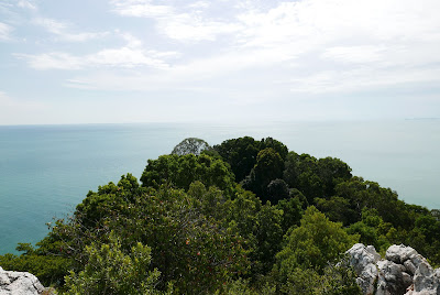 一小段罢了,2分钟就到达了小小的山顶。这里视野辽阔,完全没有其他阻碍物挡着视线。最让人感到兴奋的是那巨大和美丽的海湾。浅蓝色的海湾就在眼底下。海水依旧非常清澈。海底下的海草,石头和珊瑚?都能看到一清二楚。还想不到西海岸除了浮罗交怡还有那么没的景点。