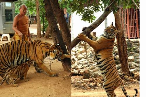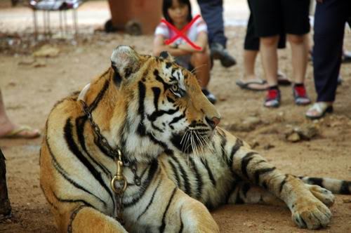 他说他前天才去过了Kancinaburi的老虎寺;很值得去云云,