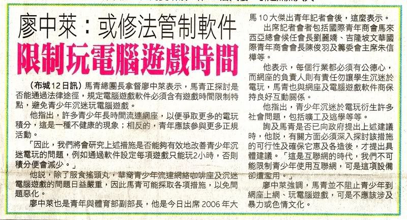 yesterday newspaper 标题。。救救马来西亚的华青。。。。 沉迷网路游戏。。 |