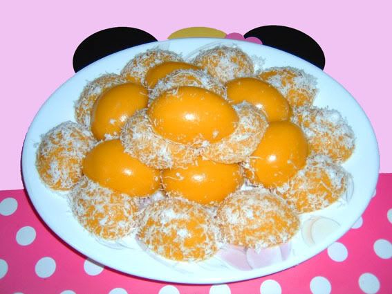 怎样,你觉得这个食谱是不是很容易呢? 全部材料准备好,倒进果汁机,糊了就倒进铝器。。蒸熟待凉了就取出贴椰丝。。。