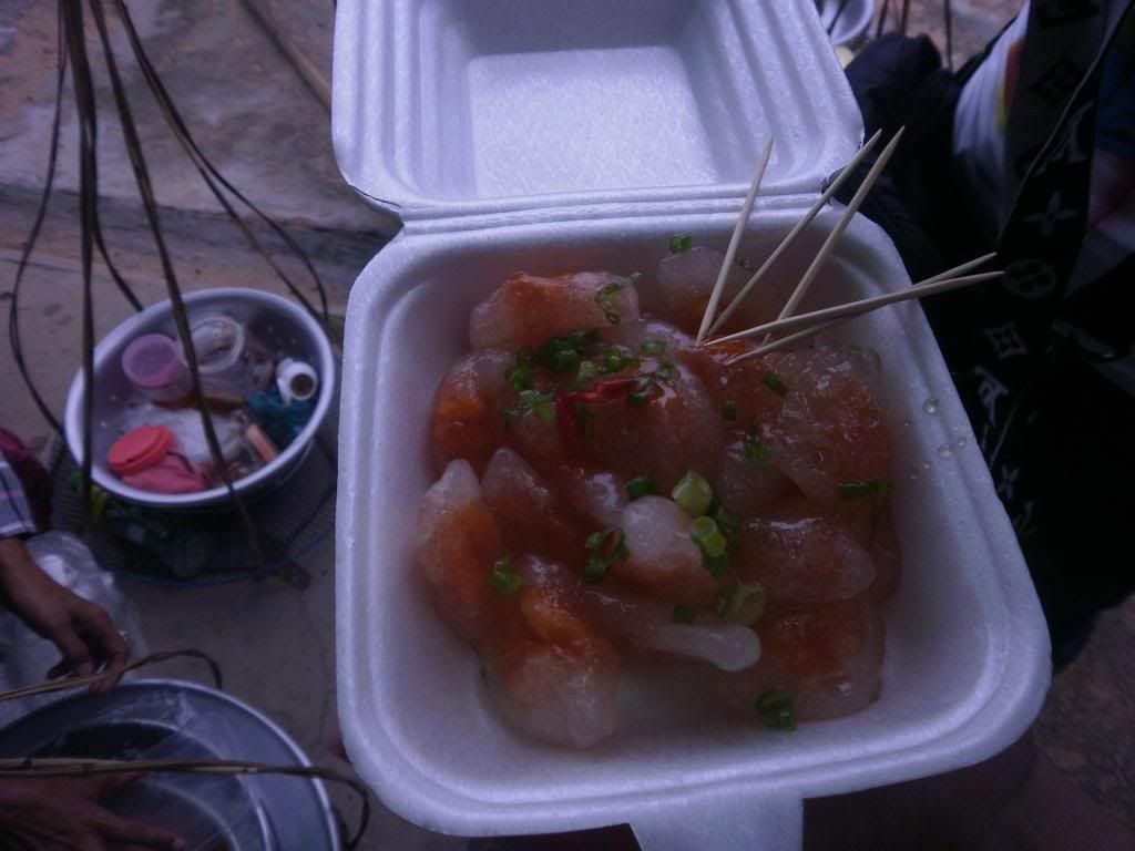 这小吃皮有点像菜糕里面包着小虾米。 |