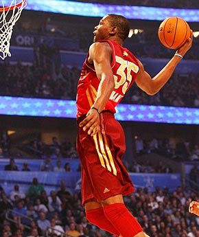 北京时间2012年2月27日,NBA全明星大赛进入到了最后的高潮,东西部全明星对抗赛压轴登场。在杜兰特36分的带领下,西部全明星顶住了东部在最后时刻的疯狂反扑,最终以152-149险胜东部全明星队。杜兰特获得了本次全明星大赛的MVP,力压同样获得了36分但是输掉比赛的詹姆斯。