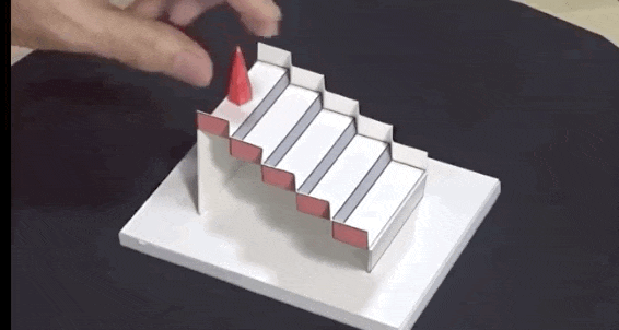 而作者根据这样的透视反转的原理,用折纸将原本 2D 的楼梯用 3D 立体的形式表现了出来,从效果上看,错觉感不逊色于经典作品。