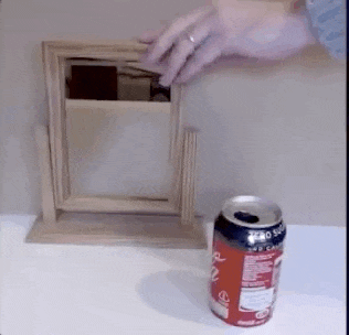 亚军作品《这是真的吗》也很有意思,「镜子错觉」是视觉错觉中非常流行的主题之一,而作者用易拉罐、卡纸和一个相框就可以做出非常出色的「镜子错觉」效果。
