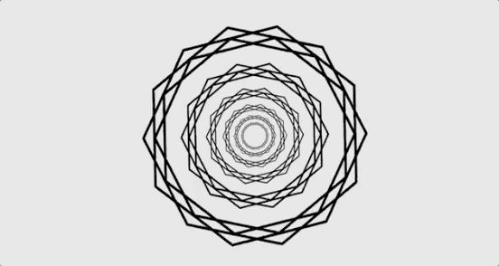 例如《太阳的幻觉》中利用由点、线组成的旋转多边形制造出非常有趣的现象,当我们盯着中心的圆圈时,会感觉到多边形交点处会像太阳一样在射出光线。