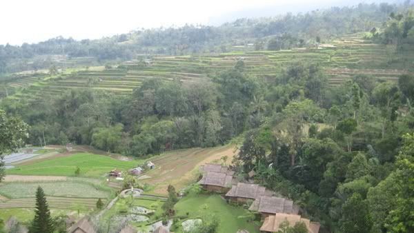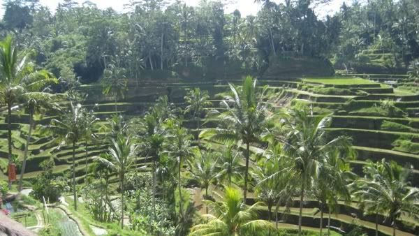 2008年8月5日,今天还是一样的早起,是巴厘岛的太阳不让我睡得太迟。。。。。今天约好MR.Tatoo 9am 出发。想要在有限的时间内走完自己想去的地方唯有早点出发,因为今天我们要把两天的行程在一天内走完。10.30am 经过 Ubud 到达了 Tenggalalang的梯田。原本就没有打算在这里逗留太久,一下车就被两三名当地人围了起来问要不要买木雕的装饰品,Tatoo之前就说过了不要跟他们交易。可是我们跟他们说不要买了他们还是一直不走。旁边的一群老外也一样很无奈的被缠着 。由于真的很烦,我们拍了几张照片后就上车了,前后只逗留了15分钟左右。。。上了车,某位当地人还来开我们的车门问要不要。最后Rick还是跟他们交易了,杀了半价还拿了他两个。