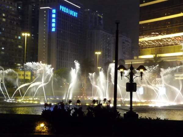 8pm 从葡京酒店(在葡京娱乐场旁)走下地道前往永利酒店。永利酒店前有“音乐盆水池 ”从8 时开始,每15分钟一次,不同的歌曲。