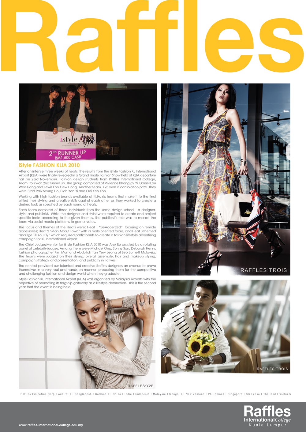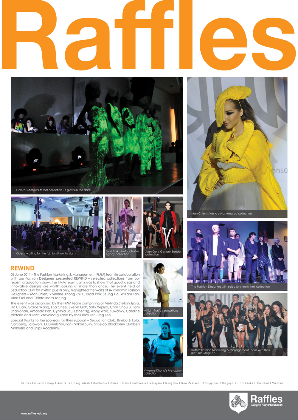 Raffles的课程不但教会学生掌握传统的服装设计专业技能,还努力训练学生顺应瞬息万变的市场需求、技术发展和潮流趋势的适应能力。课程将侧重于让同学通过实践性的课程对时装设计形成更深层次的了解,而同学们还可以在老师的指导下,通过不断完善自身的设计作品集,逐渐形成属于自己的风格。学校还将通过举办各类活动来使每个学生都有机会展示自己的作品和才华。