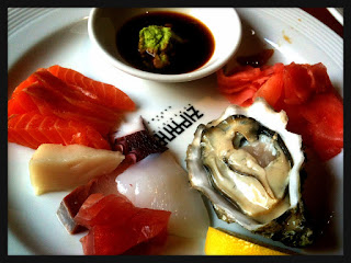 生魚片生蠔冷蝦都放在一塊. 我個人比較喜歡吃鮭魚, 其他的只是試味道. 生蠔不大顆, 大概半顆手掌, 但是新鮮, 脆脆的. 鮭魚口感很好, 爽口不膩. 其他的生魚片之是略試味道. 小女子只是生魚片的初學者, 只能淺嚐無法深論 ╮(-_-)╭