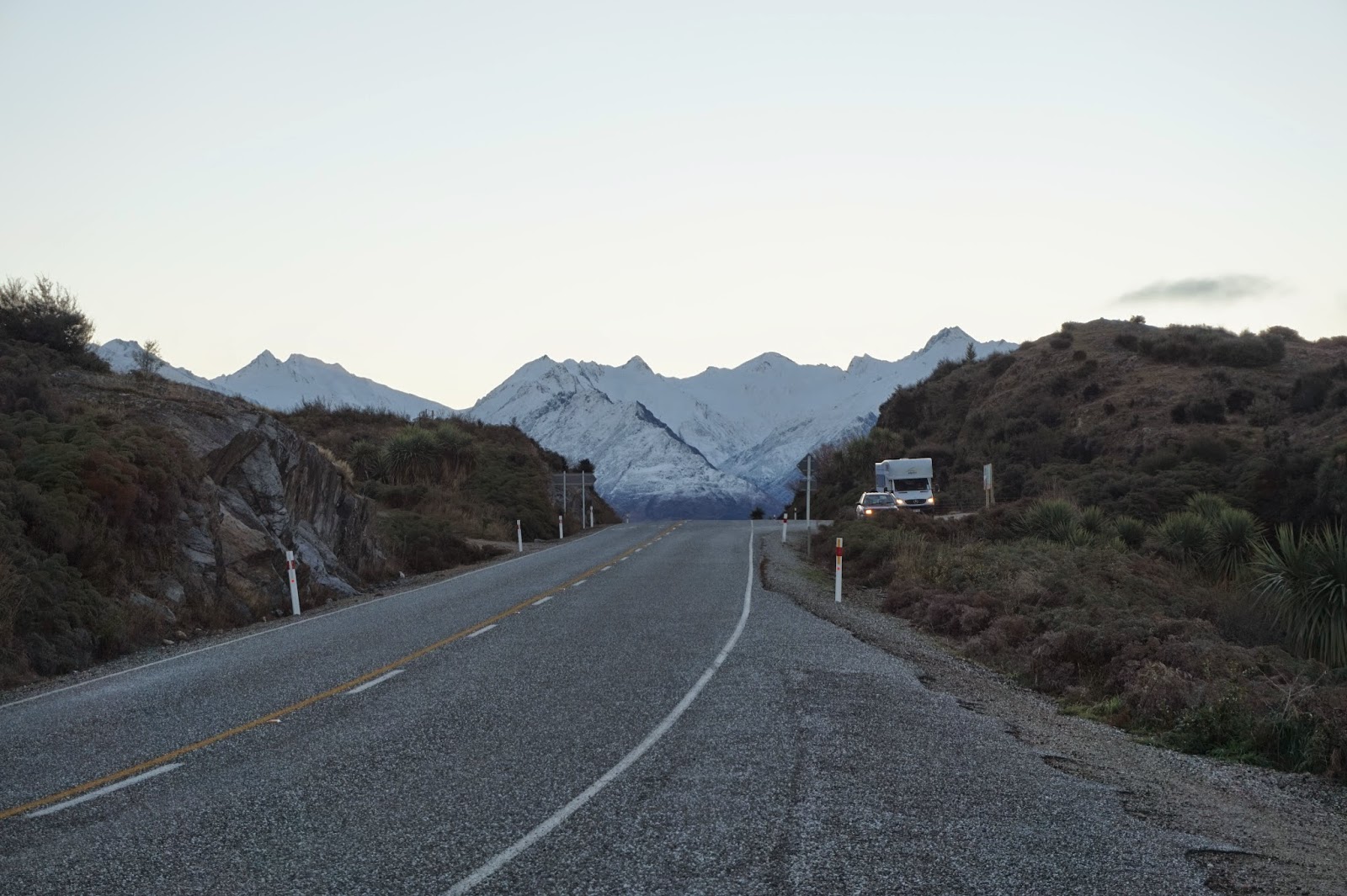 终于也看到了市镇,在车前方的是壮观的雪山脉,而雪山下就是大海了。像这样雪山在后大海在前包围着的城市在纽西兰只有 Kaikoura 能看到了。所以如果想要亲身看到这样的景色就一定要到 Kaikoura 去。