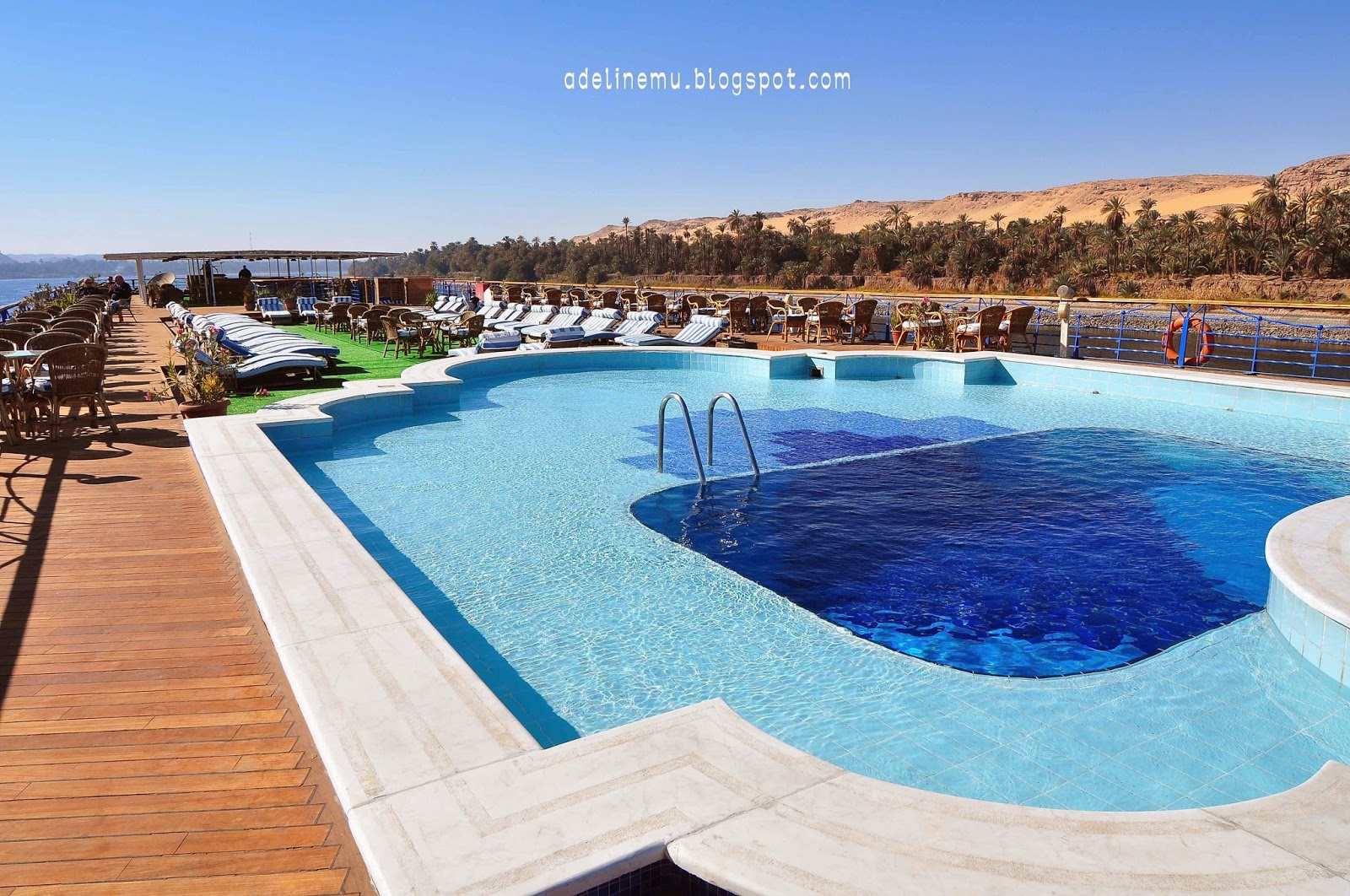 [size=14.4444446563721px]顶楼是甲板,悠闲的午后,可以一边享用下午茶,一边观看尼罗河的两岸生活。再不然,也可跳下泳池游泳。
