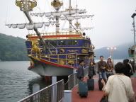 看完了玻璃之森,我们就回到YH拿了行李去搭海盗船去下一个YH,是靠近芦之湖,玻璃之森到YH才一个站,但我们有PASS 就不搭白不搭,拿了行李又回到桃原台,这次是搭海贼船,在等下一班船时,看看周围,好像我们的行李最大,还有看到一班台湾的游客和导游滔滔不绝的介绍"芦之湖',其实我之前在网站已知道了,芦之湖是可以看到富士山的"倒影",可是看到雾这么多,老娘也不指望什么!