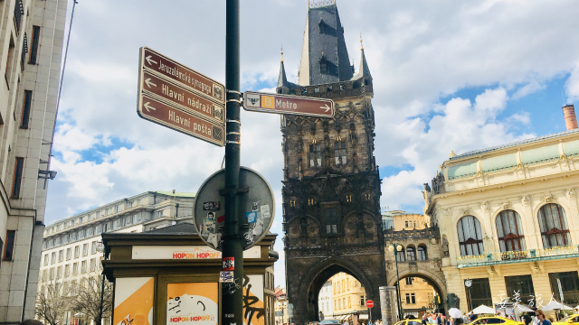 第一站,到了旧区入口的 火药塔 Prašná brána ,它是布拉格唯一保留下来的城门,现已是布拉格重要地标。你不但可以远望欣赏这哥德式风格的城门还能登上火药塔俯视整个旧区的美景。