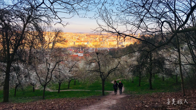 吃饱后再到附近的林区散步看日落,傍晚的布拉格很美丽,整个布拉格的建筑都被染上橘色,更像浪漫的通话世界。 |