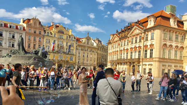 往城门里走,会来到立有宗教改革先驱 扬·胡斯 Jan Hus 雕像的 老城广场 Staroměstské náměstí ,这是布拉格里最有名的广场,所以又称布拉格广场。蔡依林的歌“布拉格广场”就在说这里。刚好那天,我在广场见证了唯美感人的求婚。