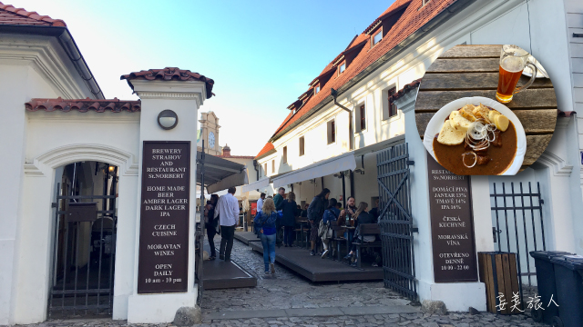 lvet 说城堡区的餐厅较贵,她叫我到小区的 Klášterní pivovar Strahov 吃午餐。这里卖的都是具有代表当地的特色美食。在布拉格以肉食为主,最常见的就是炖肉 Guláš 搭配 口感 Q 弹的 面包团子 Houskove Knedliky ,外加 一杯酒,一餐下来才 10 欧,很划算。