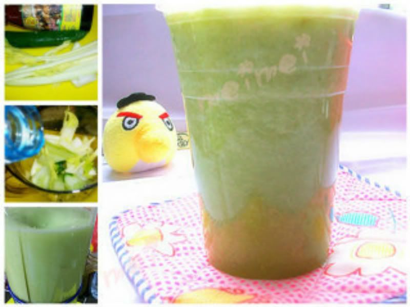 芹菜味道清香,可以增强人的食欲。 黄瓜汁含脂肪和糖较少, 是比较理想的减肥饮料。 在两餐之间最好也喝些黄瓜芹菜汁。 我个人觉得挺好的。