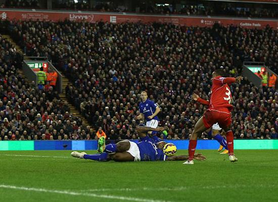 1月1日晚23点,2014/15赛季英超第20轮继续进行,利物浦本轮主场迎战升班马莱切斯特城。上半时,裁判接连判给利物浦2粒点球,杰拉德两次主罚命中,其中第2球是利物浦在英超的第100次点球破门,为英超球队之最。下半时,纽金特和施卢普2分钟之内连进两球神奇扳平。两队最终2-2战平,利物浦错过了追分的绝好机会。