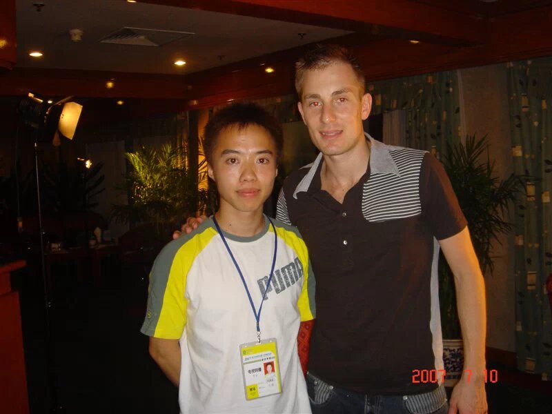 开赛第二天,7月10日,晚上5点,按照事先约定的,我们来到运动员下榻的银河王朝大酒店。准备盖德的专访。由于运动员住的房间不够大,不好布景,打灯,经过一番考虑,我们最终选定采访地点为酒店25层的商务茶楼。盖德整整迟到了1个半小时,不全是他的错,因为他没有打到的士,(那个时候正是rushhour,交通很拥挤)我们只好拜托他的随队翻译从酒店打的过去接他。不过,再赶回酒店,洗了个澡,上来于我们见面的时候,他很绅士风度的连声说着“sorry”。