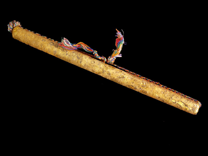 写好之后,就卷起来。过后,将收集回来得7种特殊叶子磨成的粉,贴在takrut的外面。