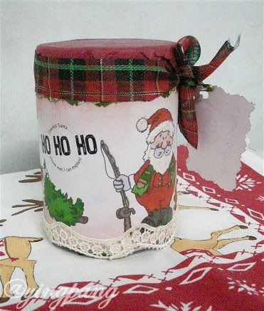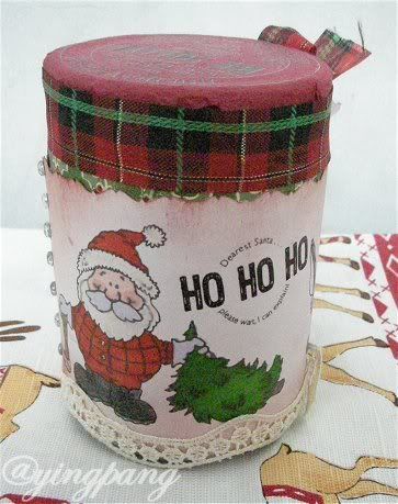 我用了一个下午做了这个 ,也是High Hopes rubberstamps的每星期日的卡片挑战,这个星期你什么都可以做,就是不能做卡...所以我就去厨房挖了这个空罐出来,再用high h ...