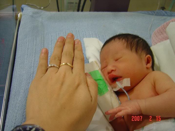 2月14日﹐凌晨5點45﹐護士推了輪椅接我去檢查CTG胎兒心跳﹐檢查中發現宮縮又出現了﹐7點已經檢查了一個小時﹐護士近來說明需要等醫生刊來才決定如何﹐而醫生正趕來途中。 我打了電話正在病房等我的老公﹐叫他先別離開等醫生來看醫生怎麼說。7點半醫生來了﹐看了CTG圖後醫生說一定要立刻開刀﹐然後15分鐘後護士推我回病房﹐然後有人來幫我剃毛換衣服﹐立刻就被推去了手術室。打了SMS還來不急送出就丟了給老公﹐只來得急叫老公幫我送去給TENNY﹐angela,miao.