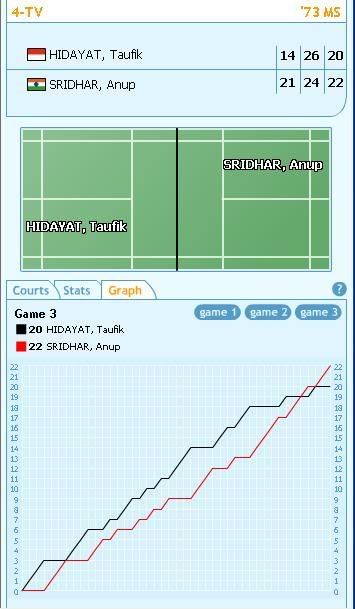 20-22 道费输了.....哈少偷笑.....林丹更是哈哈大笑..... |