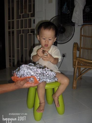 很久没有来看你了!宇骏很可怜啊!感冒刚好一个星期又喉咙发炎,太热气了!为了他我差点要跟家婆闹翻了!家婆不给他吃水果的,说什么一岁前不可以吃水果,果汁也不行,放在粥里煲也不行,我说宇骏不够营养不够抵抗力所以生病,他却说就是因为吃水果才生病,宇骏不喜欢喝水,可是喜欢喝果汁,偏偏我家婆不肯,所以现在他喉咙发炎了,我家婆还说是我买的teething gel导致的,所有现代化的东西他都不能接受,可是却可以接受给宝宝吃冰淇淋,这是什么道理?我要爆炸了!