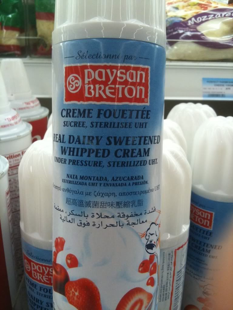 它是紙盒裝的會寫著 whipping cream,daily whipping cream(動物性鮮奶油)