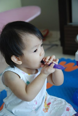 Heidi好久没进来你的楼了!宣宣好吗? 看到没说她从床上掉到地上真把我吓了一跳!宣宣已经长四跟牙了阿?我家阿皓刚要长第三和第四跟,最近胃口也小了!