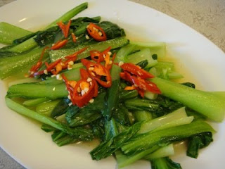 4. 再加入100ml的清水,随即取出小白菜放入碟内。汤水留在锅内。