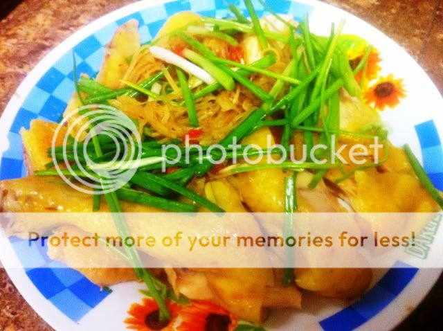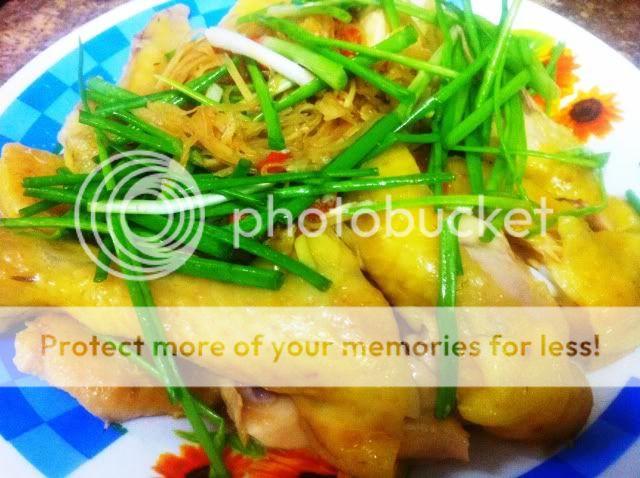 这只鸡黄橙橙的皮一定很有咬劲很美味咯。。盐蒸鸡,好吃! |