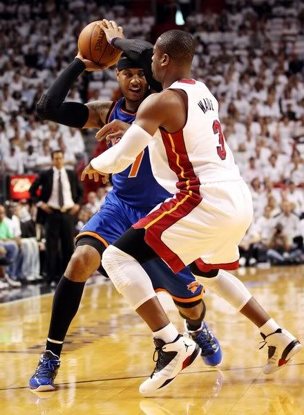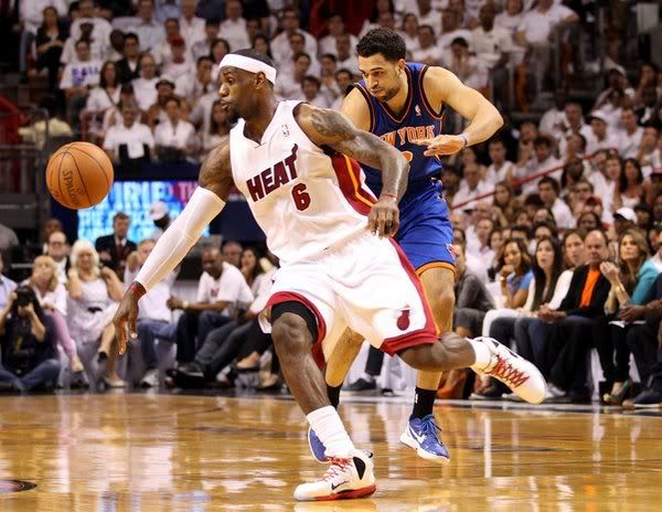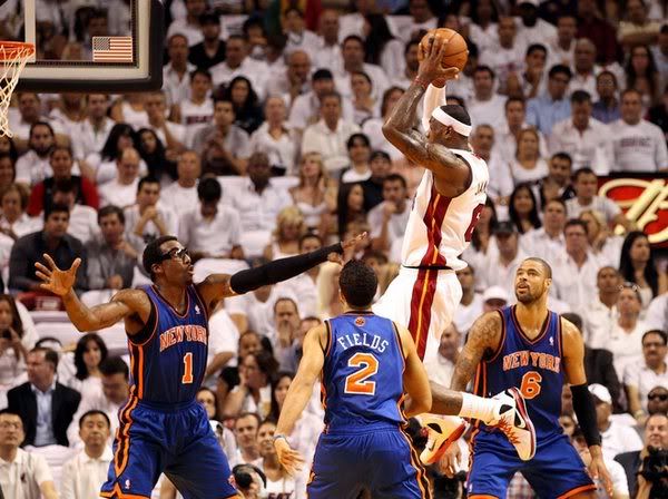 尼克斯开场直接派上了史密斯,斯塔德迈尔连得4分,安东尼也投篮得手,热火则是韦德和詹姆斯还以颜色,分差则一直在10分上下摇摆。斯塔德迈尔在两分多钟的时间内连续吃到了3次犯规,飙升到5次之后只有被换下场,此时尼克斯以54-64落后10分。波什成为了热火主要攻击点,尼克斯这边的安东尼则吃到了技术犯规,热火打出了一波14-4的小高潮,以78-60领先了18分。安东尼压哨投篮命中,但热火仍然以81-67领先进入末节。安东尼24分,詹姆斯21分。