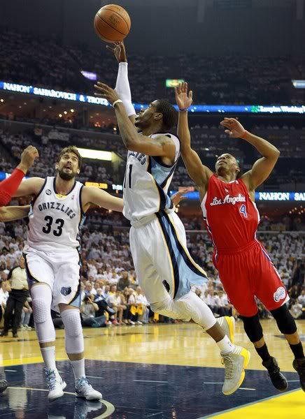 本场比赛对灰熊来说是决定命运的一战,从比赛开场灰熊就已经做好了遏制保罗的准备。第一节进行了不到一分钟,康利和保罗就先后送出了一次助攻。尽管保罗很快连投带罚拿下3分,但康利的状态更为出色,连续妙传马克-加索尔篮下得分,自己也中投命中。在灰熊防守专家托尼-阿伦的贴身紧逼下,保罗在进攻端的威胁大大减少,三分远投被封盖还让阿伦打三分成功。