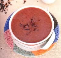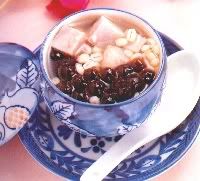 ( 3 ) 煲滾清水, 放入紅豆, 黑糯米, 陳皮煲至再滾, 改慢火煲兩小時, 加入片糖調味, 再放入棷汁煮至滾, 即可食用. |
