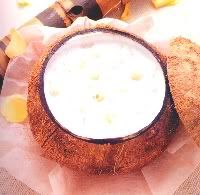 2 冰 糖 置 碗 內 稍 蒸 后 倒 入 椰 盅﹐ 上 籠 蒸 1 小 時 后 再 倒 入 發 好 的 銀 耳 和 椰 奶﹐ 蒸 熟 即 成﹒ |